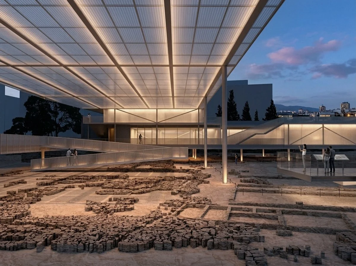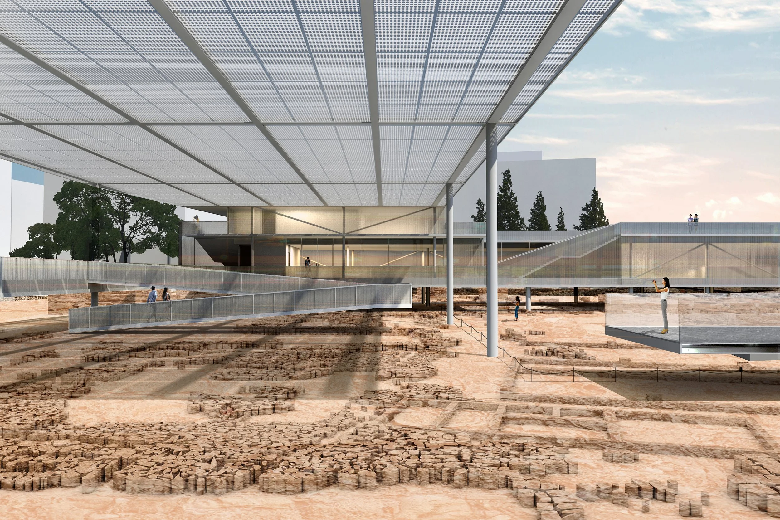 VIEW FROM ROOF TERRACE OVER ARCHAEOLOGICAL SITE