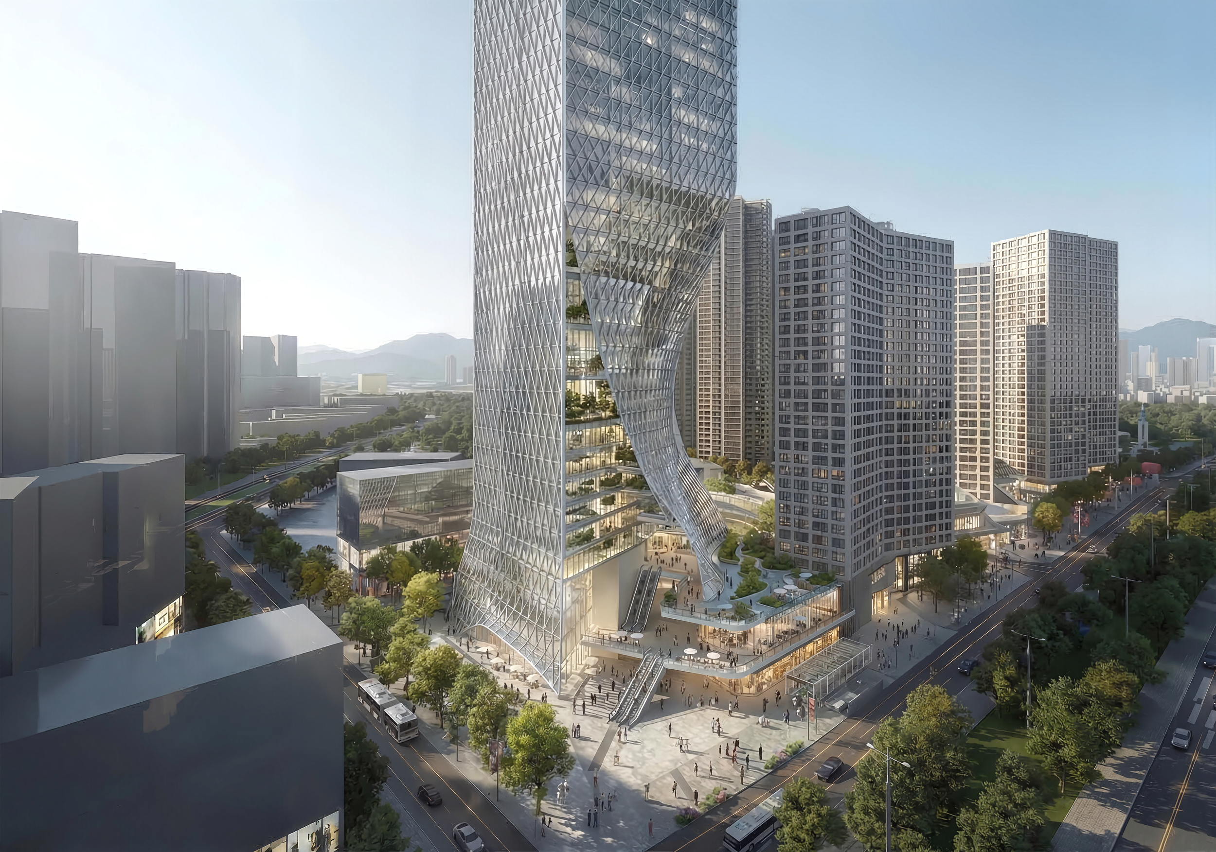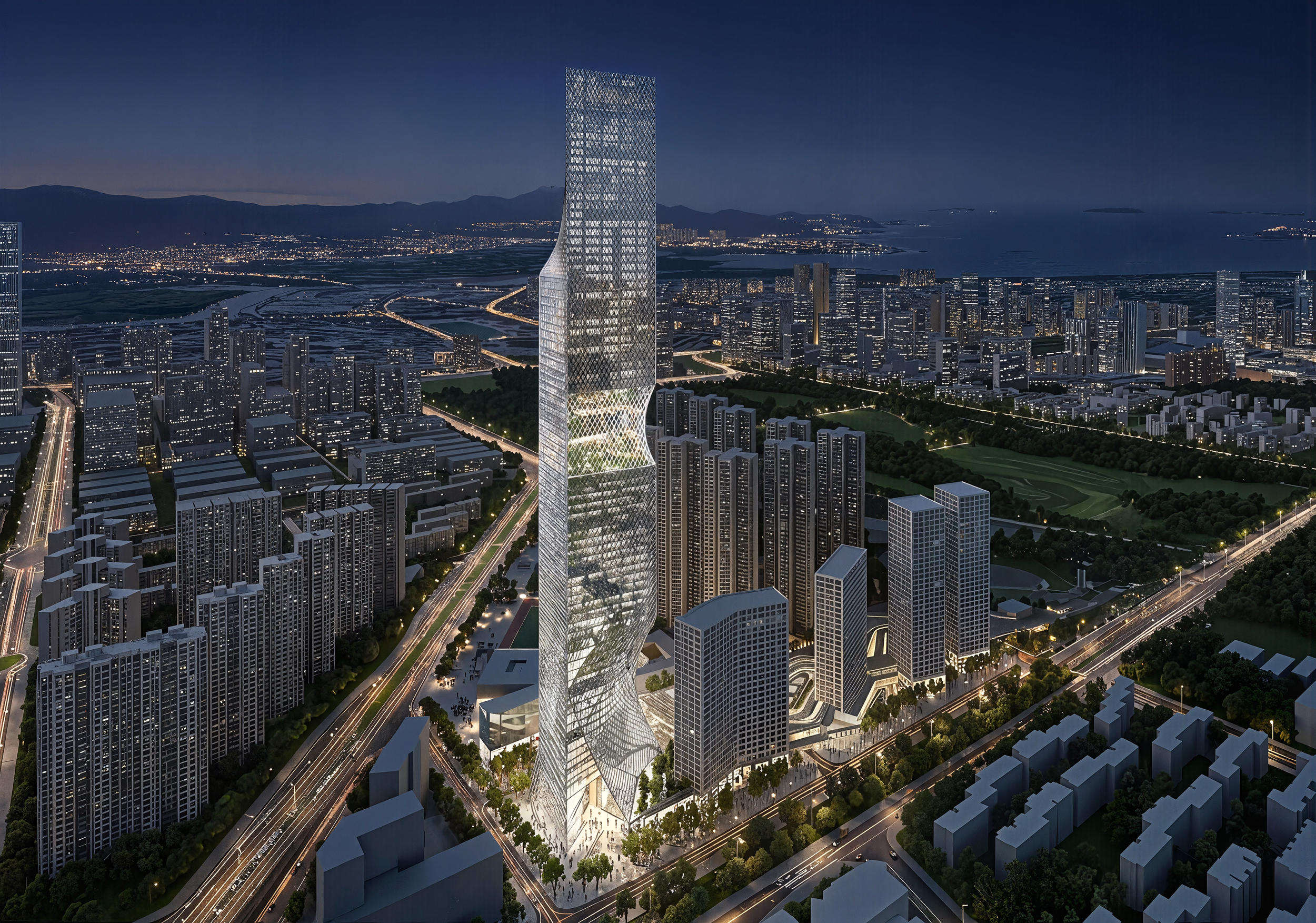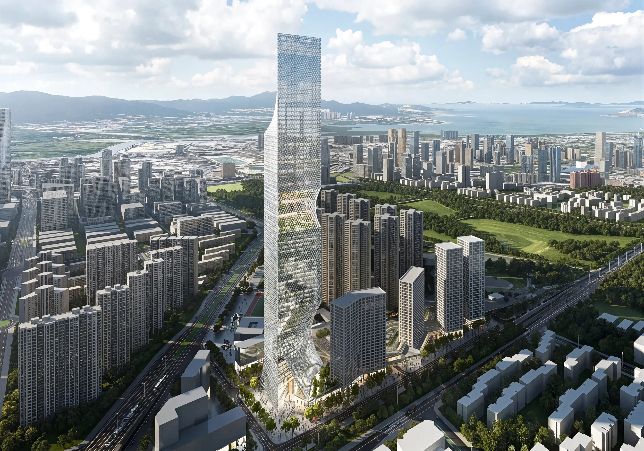 Within the greater masterplan, the tower is oriented to an open view of Shenzhen’s “Central Park.”